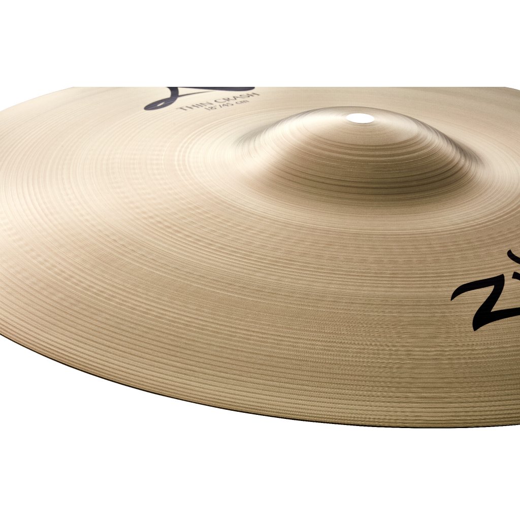 Thin Crash je tenký činel typu Crash s povrchovou úpravou Traditional, stredne jasným stredovým rozsahom a dlhým sustainom. Nový dizajn zvona znamená širší rozsah zvuku tohto činelu.