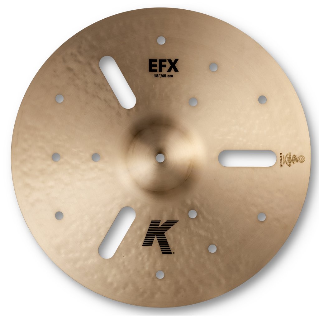 K EFX je tenký, rýchly činel s tradičnou povrchovou úpravou, temným hlbokým zvukom a krátkym sustainom. Vyznačuje sa komplexným, hlbším zvukom.