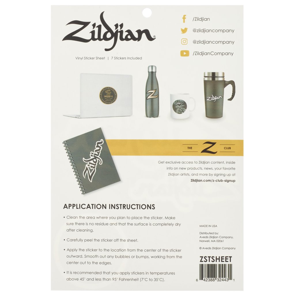 Kolekcia siedmich vinylových nálepiek so štýlovými motívmi Zildjian. Nálepky sú vyrobené z odolného vinylu s lesklým povrchom a silným permanentným lepidlom, čo zaručuje maximálnu odolnosť vo vnútorných aj vonkajších podmienkach.